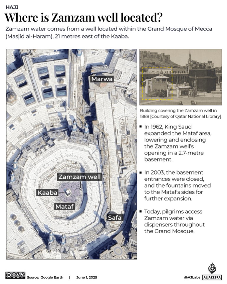 Saudi authorities have established a sophisticated, multistage system to store and distribute Zamzam water, ensuring it remains clean, safe and easily accessible. Electric pumps transport Zamzam water 5km (3 miles) south to the King Abdullah Zamzam Water Project in Kudai. There, the water is purified and then bottled.