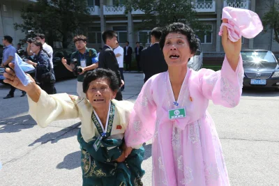 Some 75% of South Koreans registered as separated from family in the North have died of old age, government data showed Thursday. In this 2018 file photo, North Korean women react after seeing off a family member during a reunion at the Mount Kumgang resort, North Korea. Pool File Photo by O Jongchan/EPA-EFE