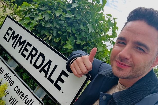 Adam Thomas has shared a picture of himself on the set of Emmerdale set as he tells fans ‘I’m back’ seven years after leaving the ITV soap