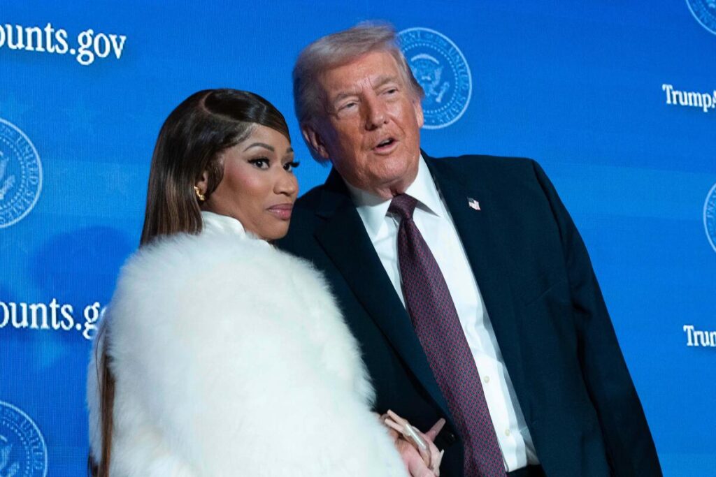 In December, before Christmas, the rapper also appeared onstage with conservative activist Erika Kirk, widow of Charlie Kirk, who was slain in September at Utah Valley University. Minaj took the opportunity at the Phoenix conference of Kirk’s organization, Turning Point USA, to praise Trump and mock California Gov. Gavin Newsom.