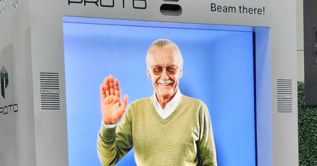 The hologram, at least the one on the show floor, is not really a hologram. With a box built by Proto Inc., the company that also launched an interactive mirror from “The Conjuring,” and Hyperreal, a company whose chief executive Remington Scott helped bring Gollum and Smeagol to life for Peter Jackson’s “The Lord of the Rings” movies and creates realistic avatars, it is an interactive Stan Lee image that processes questions and formulates responses.