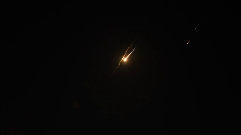 Israel’s Iron Dome is intercepting missiles launched from Iran, as air raid sirens sound across Tel Aviv.