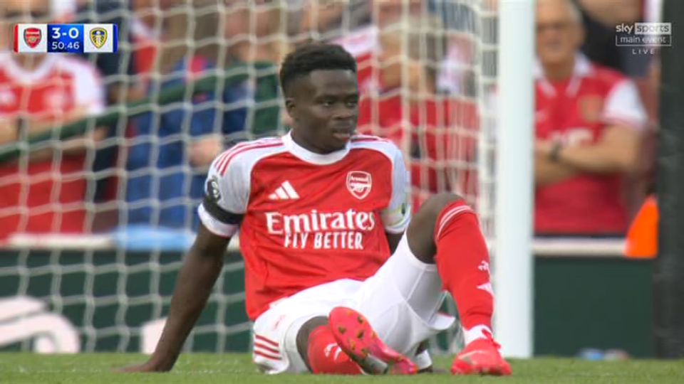 Saka appeared to suffer a hamstring injury and he received treatment before hobbling off.