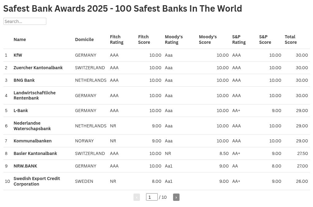 World’s Safest Banks 2025: Emerging Markets Top 50