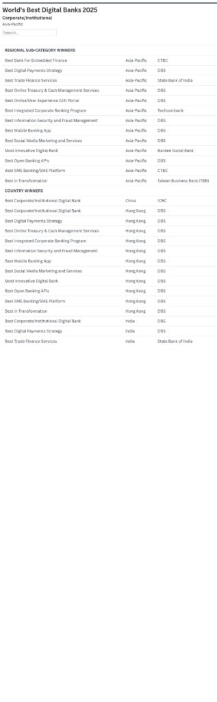 Best Corporate/Institutional Digital Banks in Asia-Pacific 2025