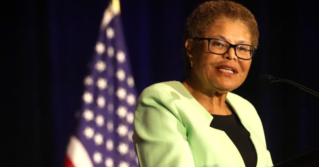 The setting looked almost cozy: Los Angeles Mayor Karen Bass and a podcast host seated inside her home in two comfy chairs, talking about President Trump, ICE raids, public schools and the Palisades fire.