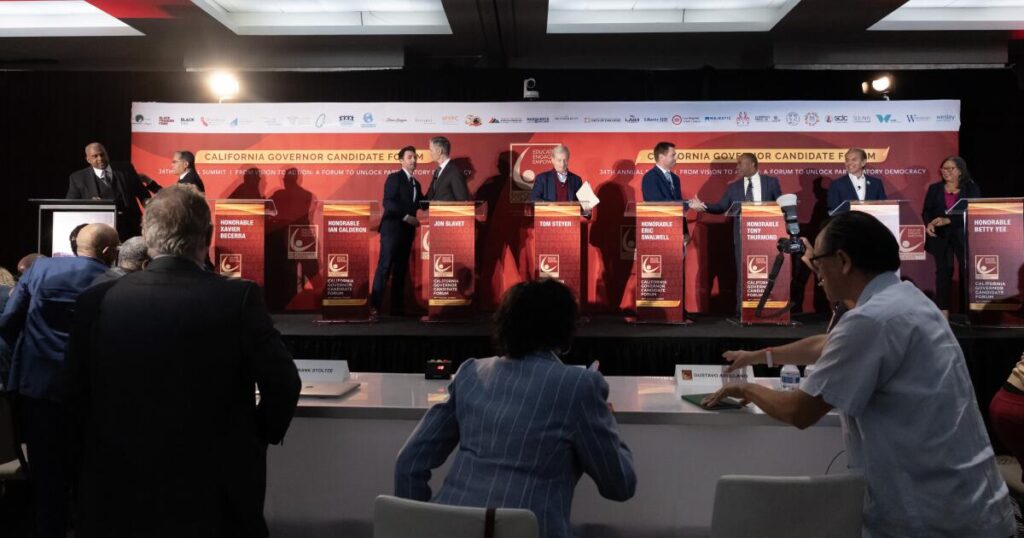 “This is the most wide-open governor’s race we’ve seen in California in more than a quarter of a century,” said Dan Schnur, a political communications professor who teaches at USC, Pepperdine and UC Berkeley. “We’ve never seen a multicandidate field with so little clarity and such an absence of anything even resembling a front-runner.