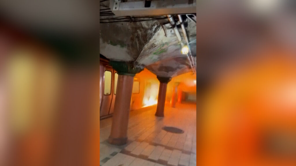 Passengers fled a smoke-filled carriage after a fire broke out beneath a train at Newport Station in Jersey City, US. Thirteen people were treated for smoke inhalation, nine of whom were sent to the hospital. The PATH commuter trains connect New Jersey with New York City.