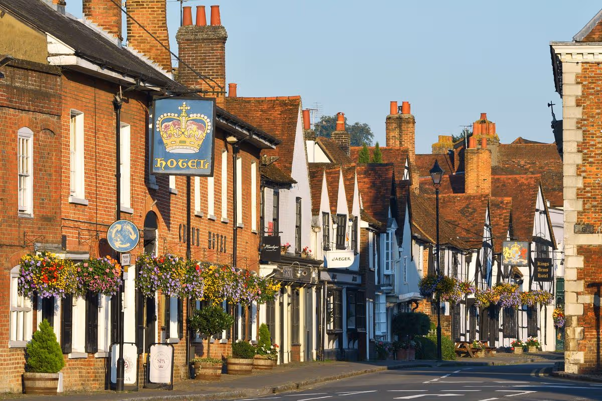 Amersham market town in Buckinghamshire is accessible via the Metropolitan Line and offers Cotswolds-style charm with cobblestone streets, timber-framed cottages and rolling hills