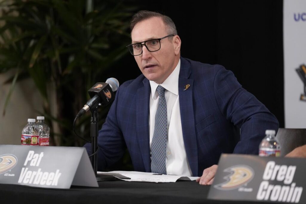 Ducks general manager Pat Verbeek speaks to reporters during a news conference in June 2023.