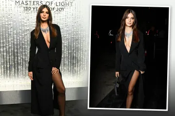 Emily Ratajkowski shows off cleavage in plunging black coat with crystal necklace