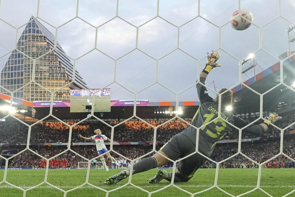 England leveled the score in the 57th on Alessia Russo’s header from a cross by Kelly after Caldentey had given Spain the lead in the 25th by finishing Ona Battle’s cross.