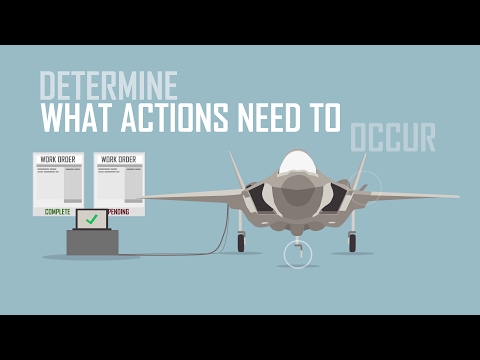 A member of the US Air Force uses a laptop to review maintenance data from the ALIS system. USAF