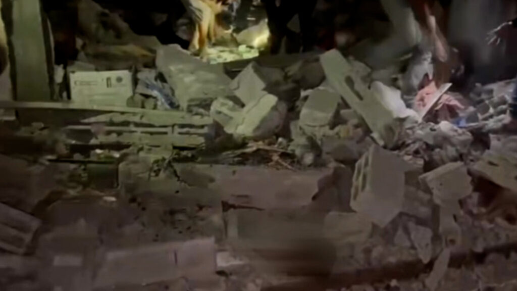 The body of a child was pulled from the rubble as families searched for loved ones trapped under the remains of their ho