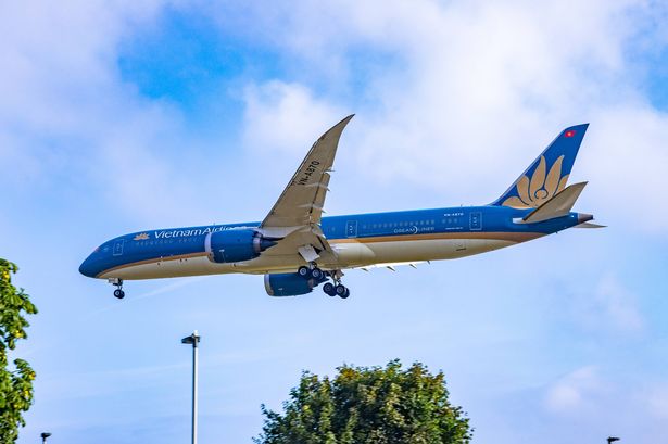 Vietnam Airlines Boeing 787-9 Dreamliner airplane landing at London Heathrow International Airport EGLL LHR in England, UK early morning during a summer blue sky day with clouds on August 2, 2019. The 787 aircraft has the registration VN-A870, has 2x GEnx engines. VietnamAirlines VN HVN VIET NAM AIRLINES is the Vietnamese flag carrier airline and is a member of SkyTeam aviation alliance. The airline connects Hanoi and Ho Chi Minh City to the British Capital, London. (Photo by Nicolas Economou/NurPhoto via Getty Images)
