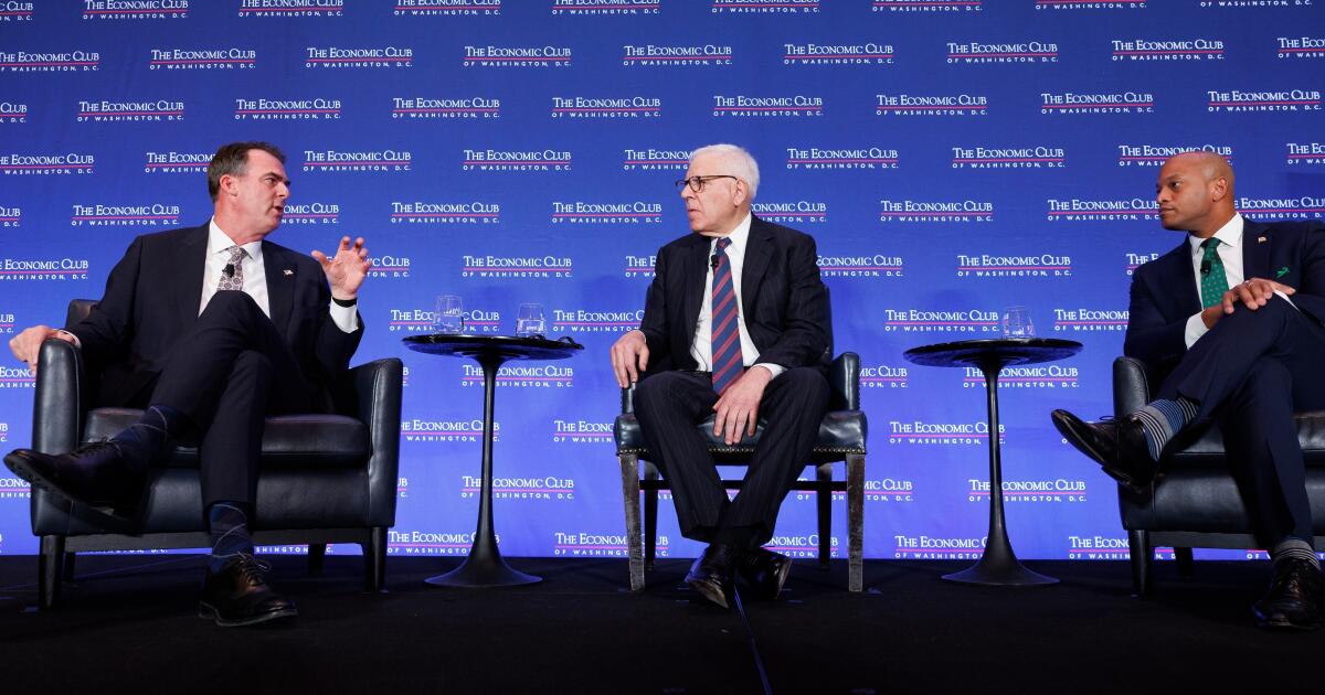 Sitting side by side on stage were Oklahoma Gov. Kevin Stitt, a Republican, and Maryland Gov. Wes Moore, a Democrat. They traded jokes and compliments instead of insults and accusations, a brief interlude of cordiality in a cacophony of conflict.