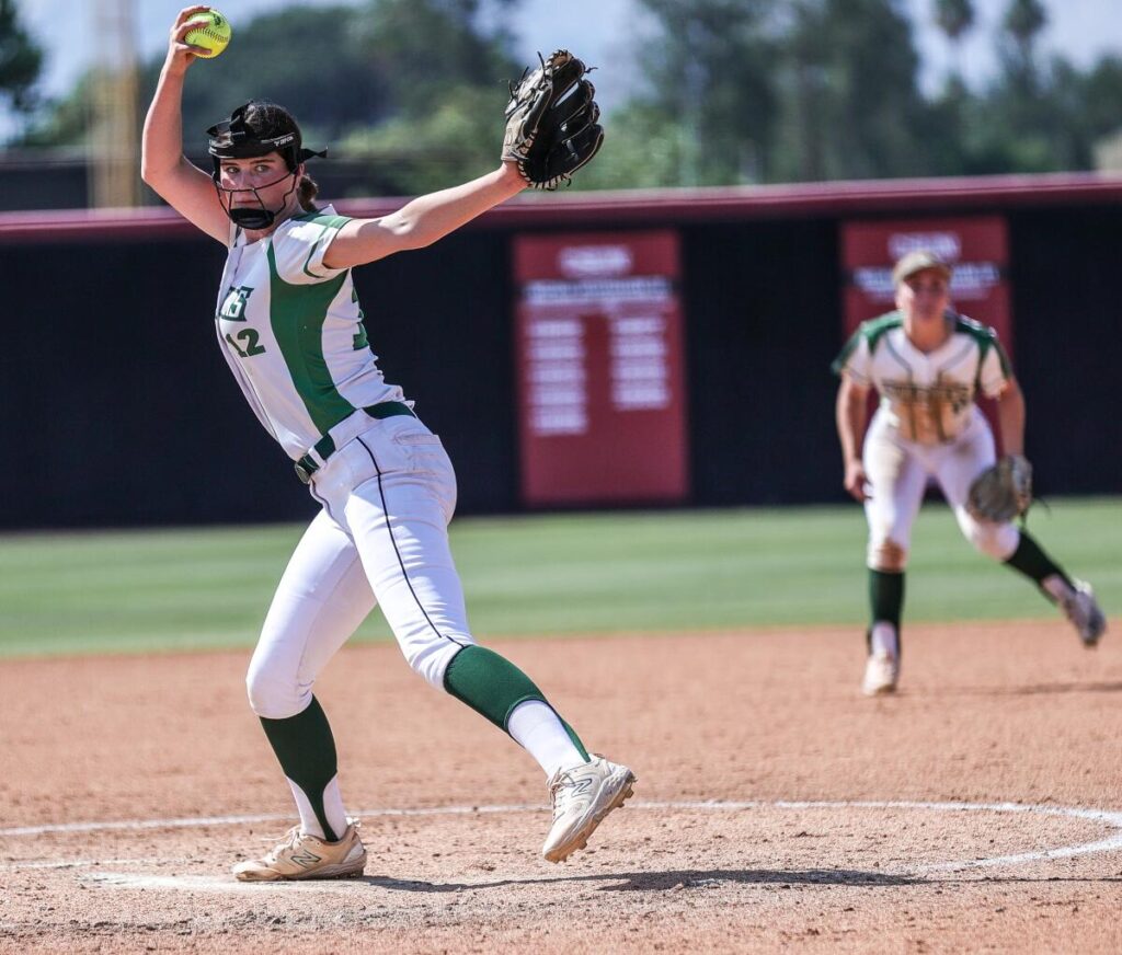 “‘Every time a pitcher always feels that burden of carrying the team, and [Moorman] dealt with it well,” said Granada Hills coach Ivan Garcia. “Her character is greater than her talent, the way she handles her teammates, the way she leads by example. I mean, you wouldn’t know that she’s a star pitcher, the way she puts bases away, the way she cleans up.”