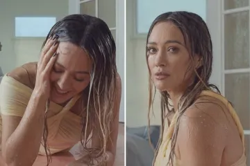 Hilary Duff crawls on floor in soaking-wet see-through dress for music video