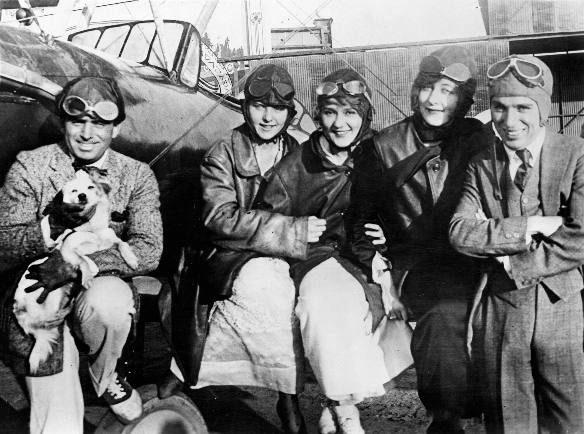 Mary Pickford at Chaplin Airfield on Fairfax Avenue and Wilshire Boulevard in 1921 with Doug Fairbanks, her niece Gwynne Pickford, Mildred Harris and Sydney Chaplin.