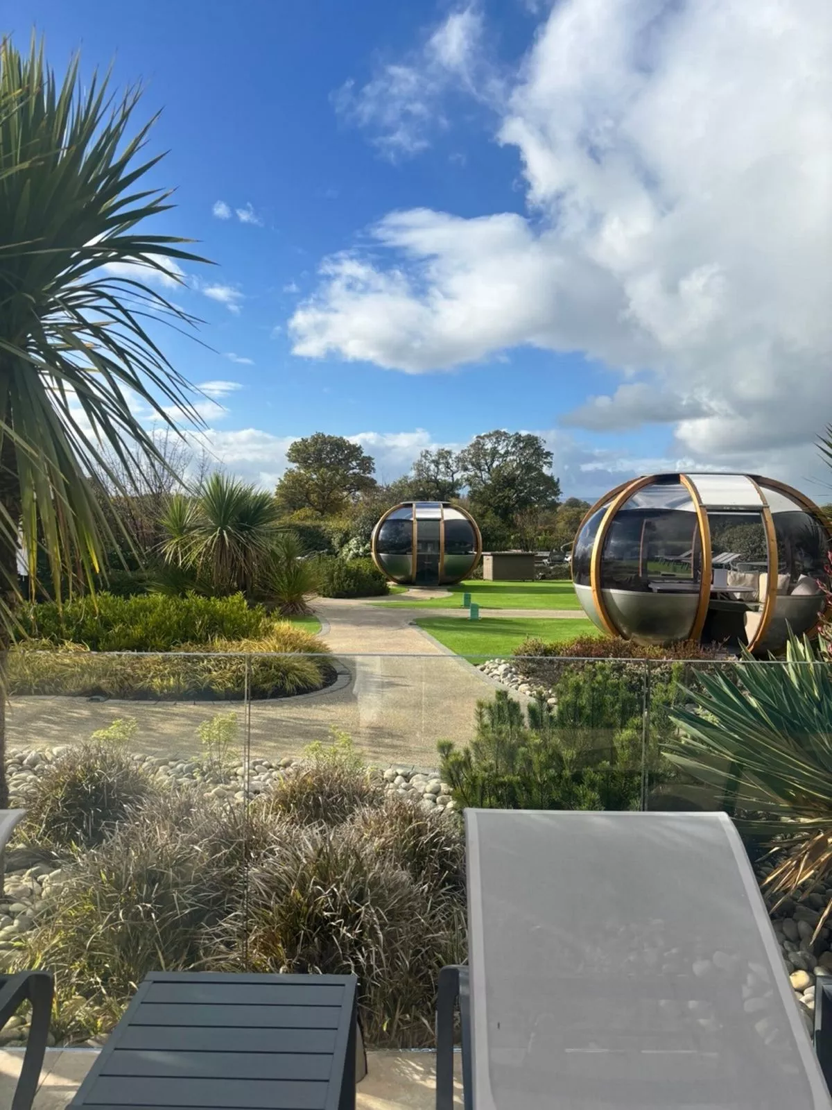 Full from our hearty lunch, we head back down to the spa garden, to luxuriate in one of the glass pods with our hot chocs. Although we are already quite comfortable, a member of the bar staff came over with cuddly hot water bottles for us – a very sweet touch.