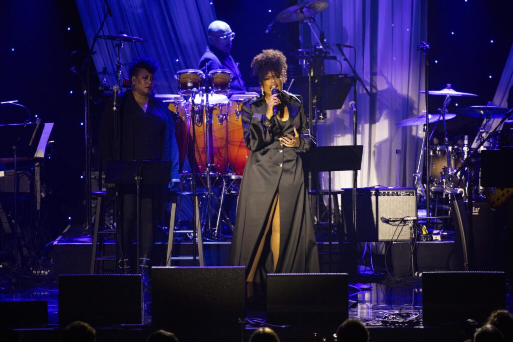 There were also tributes to two living legends: Bernie Taupin and Art Garfunkel. For the former, Darren Criss sang “Bennie and the Jets” — just one of the classics Taupin co-wrote with Elton John — then brought out Laufey for a surprisingly frisky take on John and Kiki Dee’s disco-era “Don’t Go Breaking My Heart.” (Free idea: Somebody cast Criss and Laufey in a reboot of “Grease.”)