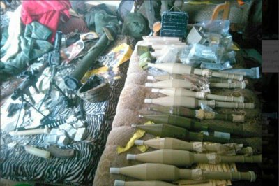 Photos included in the release show rockets laid upon a couch inside a debris-filled residence.
