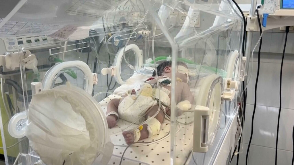 Doctors in Gaza tried to save a newborn baby rescued from her dead mother’s womb after an Israeli attack.