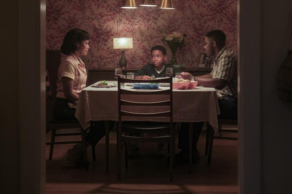 Meanwhile, Air Force Maj. Leroy Hanlon (Jovan Adepo) has been transferred to the local base, where secret doings are afoot, involving (classic plot line) the military’s desire to claim and weaponize whatever barely understood dangerous thing that’s out there in the woods. (His value to this operation is that he cannot feel fear, the result of a brain injury.) The Hanlons — including wife Charlotte (Taylour Paige), a civil rights activist in a Jackie Kennedy pillbox hat, and son Will (Blake Cameron James) — are Black (as are Ronnie and her father, seemingly accounting for 100% of Derry’s in-town African American population). “Don’t be looking for trouble,” Leroy tells Charlotte, who responds, “There’s going to be trouble anywhere we go. That’s the country you swore your life to defend.” Will, who is scientific, will become friends with Rich (Arian S. Cartaya), an appealingly goofy kid in a band uniform; they’ll both wind up on the Pennywise case.