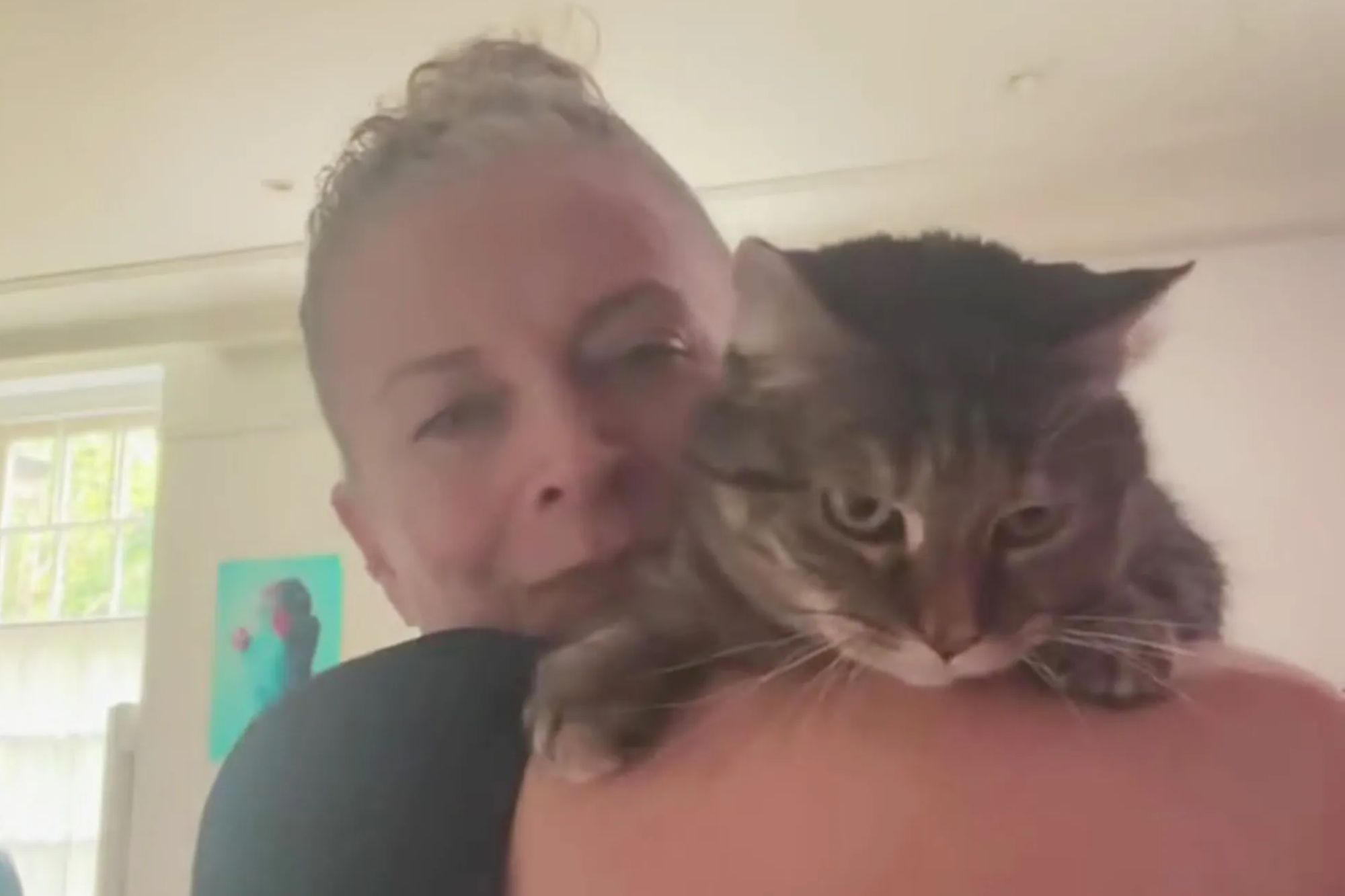 She said in a clip shared to her X account: “The surgeon said I can lift some weights so I’m starting with this one,” as she picked up her cat.