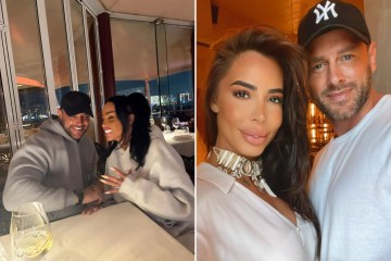 In one photo, the mum-of-five was seen standing beside rose petals that were arranged to read ‘will you marry me’ before she showcased her huge diamond engagement ring.