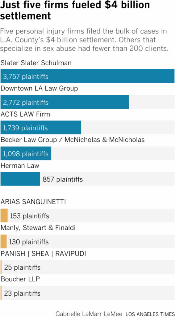 On Oct. 17, Dawyn Harrison, the top attorney for the county, requested an investigation from the State Bar based on The Times’ reporting, saying she believed some of the settlement would flow to “the pockets of the plaintiffs’ bar” rather than victims.