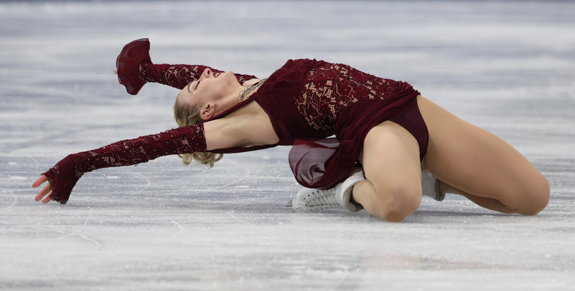 American Amber Glenn competes in the figure skating short program at the Winter Olympics in Milan on Tuesday.