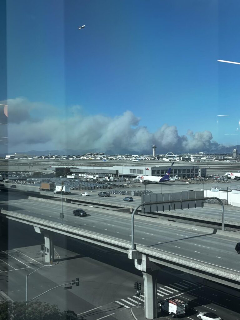 Smoke from the Palisades fire, seen from the window of the L.A. Times’ office in El Segundo, on Jan. 7.