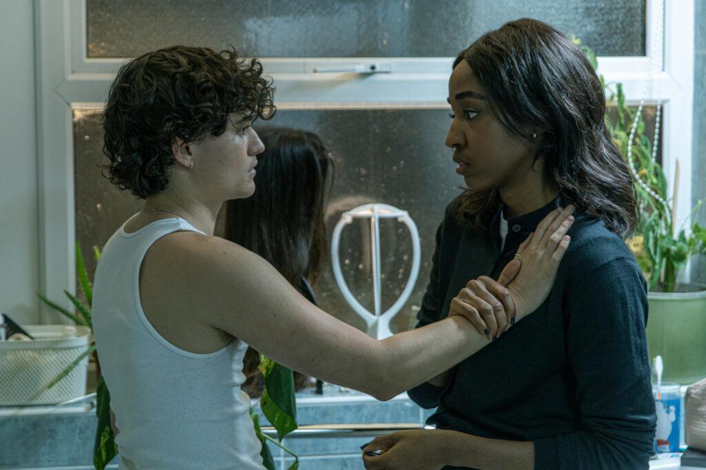 That moment Alex first appears on screen is quintessential Mehiel. Not just because of the honeyed intimacy their sweaty, bare chest exudes. But because their appearance immediately reframes everything audiences have heard about this seemingly militant, radical social justice warrior. Alex at first appears as a figure of “woke” culture there to defy the older generation Roberts’ Alma comes to stand for. But there’s more to them than that.