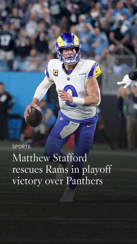 Matthew Stafford suffered a sprained right index finger in the Rams’ wild-card victory over the Carolina Panthers, but he will be ready for Sunday’s divisional-round game against the Bears in Chicago, coach Sean McVay said Monday.