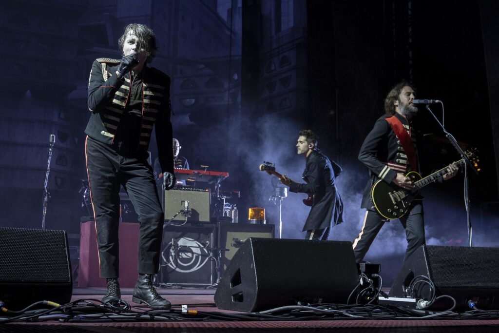 “I’m Not Okay (I Promise)” was blistering atomic pop, while “Summertime” thrummed with nervy energy; “Na Na Na (Na Na Na Na Na Na Na Na Na)” was as delightfully snotty as its title suggests. The band reached back for what Way called his favorite My Chem song — “Vampires Will Never Hurt You,” from the group’s 2002 debut — and performed, evidently for the first time, a chugging power ballad called “War Beneath the Rain,” which Way recalled cutting in a North Hollywood studio “before the band broke up” as My Chem tried to make a record that never came out.