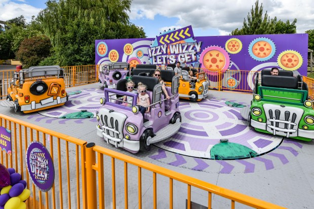 One of the themed rides is Sooty’s Magic Bus, which moves park-goers up and down.