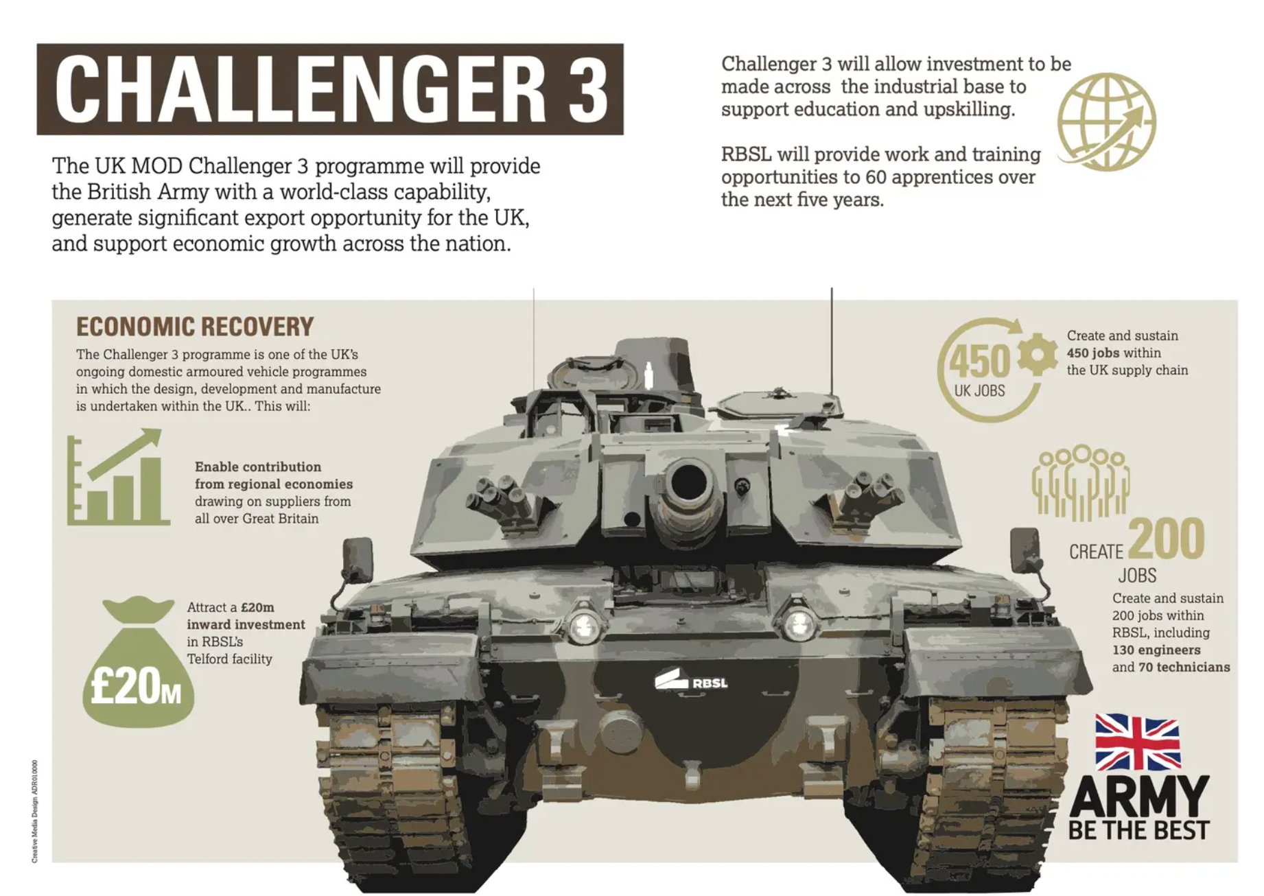 Responsible for the campaign was Rheinmetall BAE Systems Land (RBSL), a joint venture between Germany’s Rheinmetall and Britain’s BAE Systems, which is developing the new tank. The gun itself is a product of Rheinmetall Waffe Munitions. This is a 120mm smoothbore L55A1 cannon that can fire both kinetic-energy anti-armor rounds and programmable multipurpose ammunition.