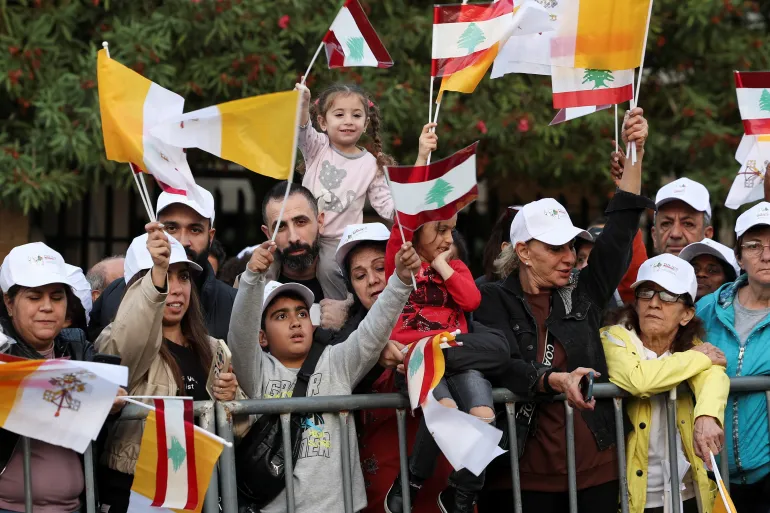 “Many people are meeting him on the side of the road towards the presidential palace and he’s expected to meet Lebanese officials. He’ll also hold a huge mass in the centre of Beirut, and then visit several cities across the country,” reported Al Jazeera’s Ali Hashem from the scene.