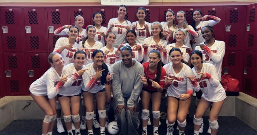 Kami Miner, an All-American volleyball player at Redondo Union and Stanford, dropped by her alma mater’s match last week before heading to Italy to play pro volleyball.