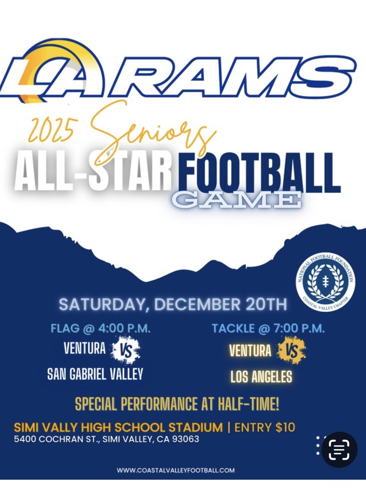 Simi Valley High will be the site for all-star football games on Dec. 20.