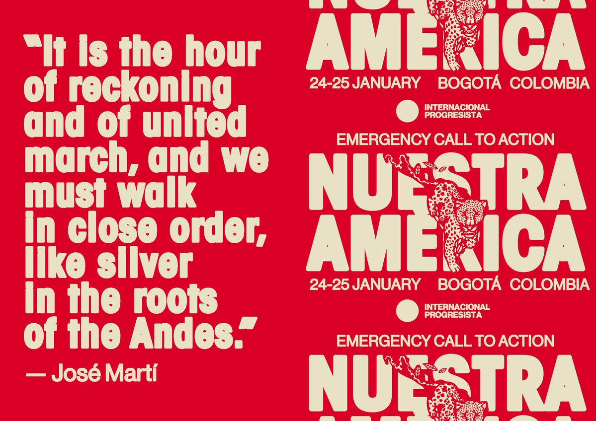 Poster from the “Nuestra América” summit with a quote from Cuban independence hero José Martí. (Progressive International)