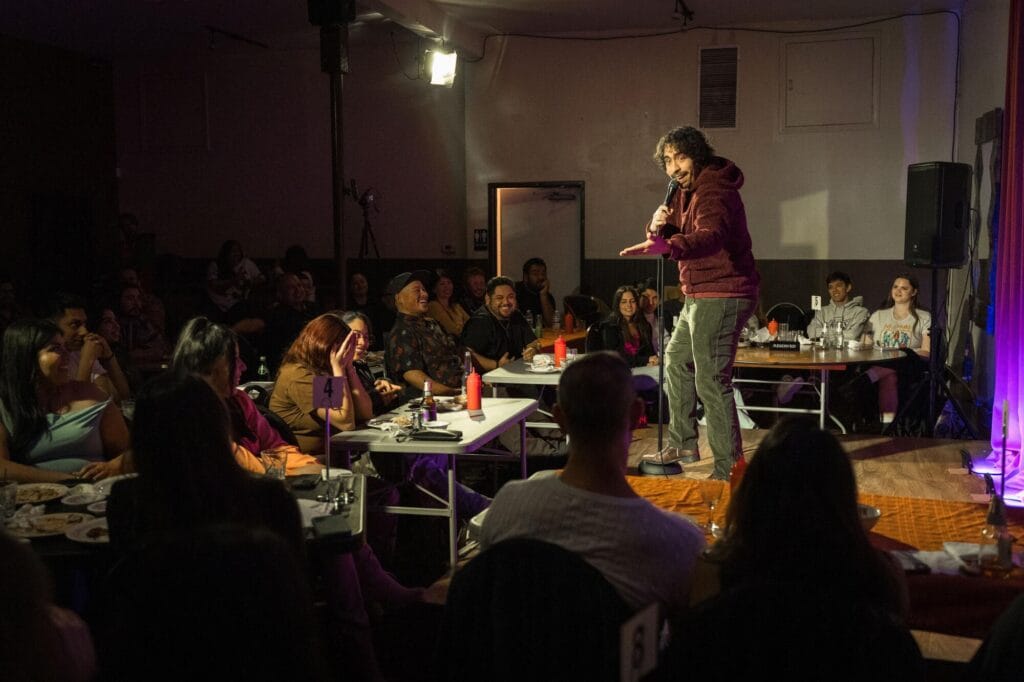 Pupusas and Punchlines offers a place where they can perform in front of a packed room and joke about the immigrant experience in the U.S. — and the absurdities of the American dream in 2025 — while sharing a delicious meal.