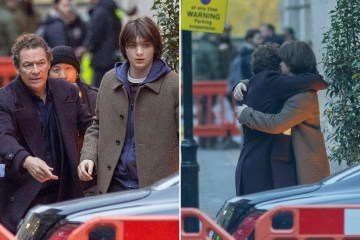Nepo-baby hugs Dominic West on TV set – but can you guess his Oscar winner dad?