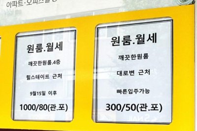 A notice advertising a studio apartment for monthly rent is posted outside a real estate office in Seoul. Photo by Asia Today