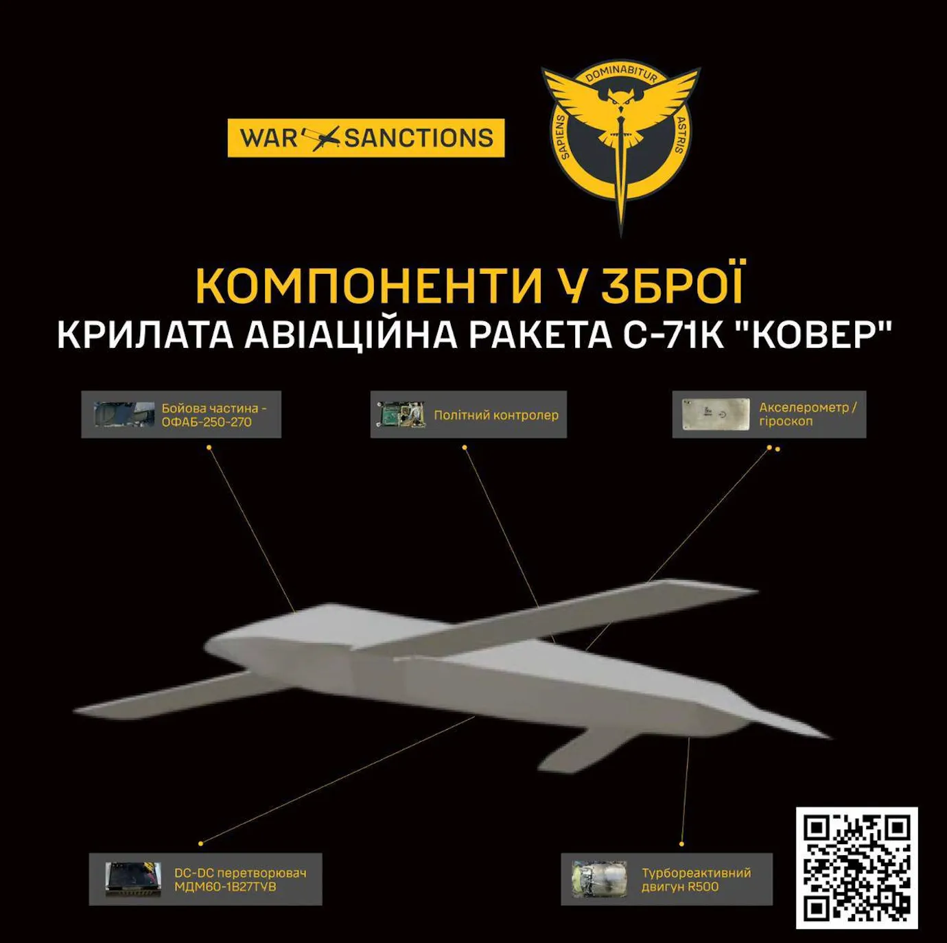 The S-71K is powered by a compact R500 turbojet engine, also produced by UAC, and features what the GUR describes as “an inertial navigation system based on simple sensors.”