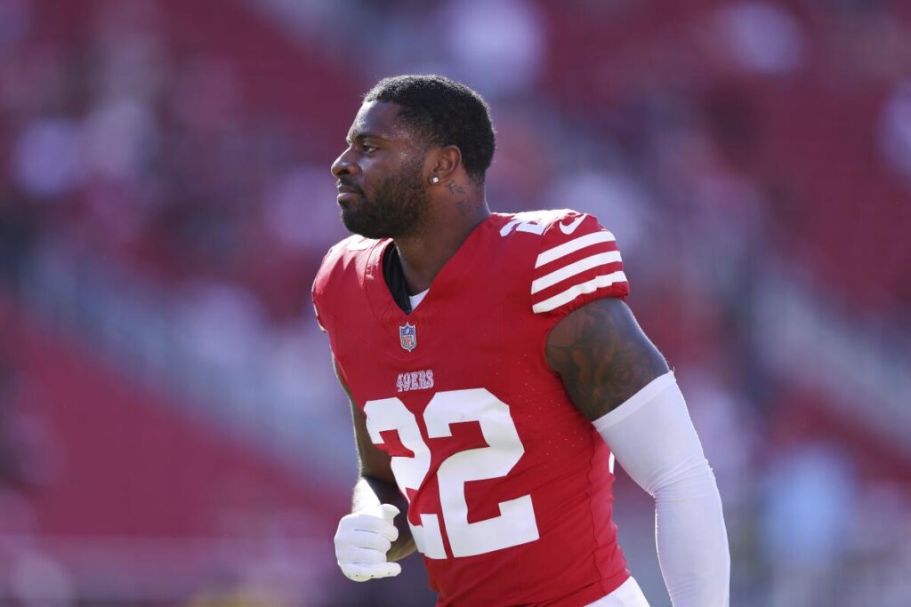 Tre Brown warms up before a preseason game between the San Francisco 49ers and Denver Broncos in August.