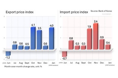 Export and import price data from Bank of Korea. Graphic by Asia Today and translated by UPI