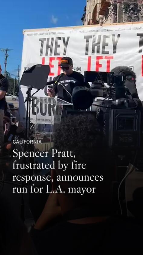 Spencer Pratt, a reality television star who lost his home in the Palisades fire and then emerged as a sharp critic of Los Angeles Mayor Karen Bass and Gov. Gavin Newsom, announced Wednesday that he will run for mayor.