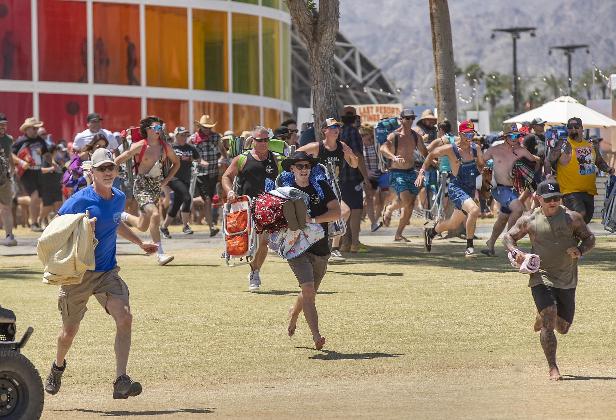 As the venue opened, country music fans made a run across the field to secure good concert-viewing positions on the first day of Stagecoach in 2022.